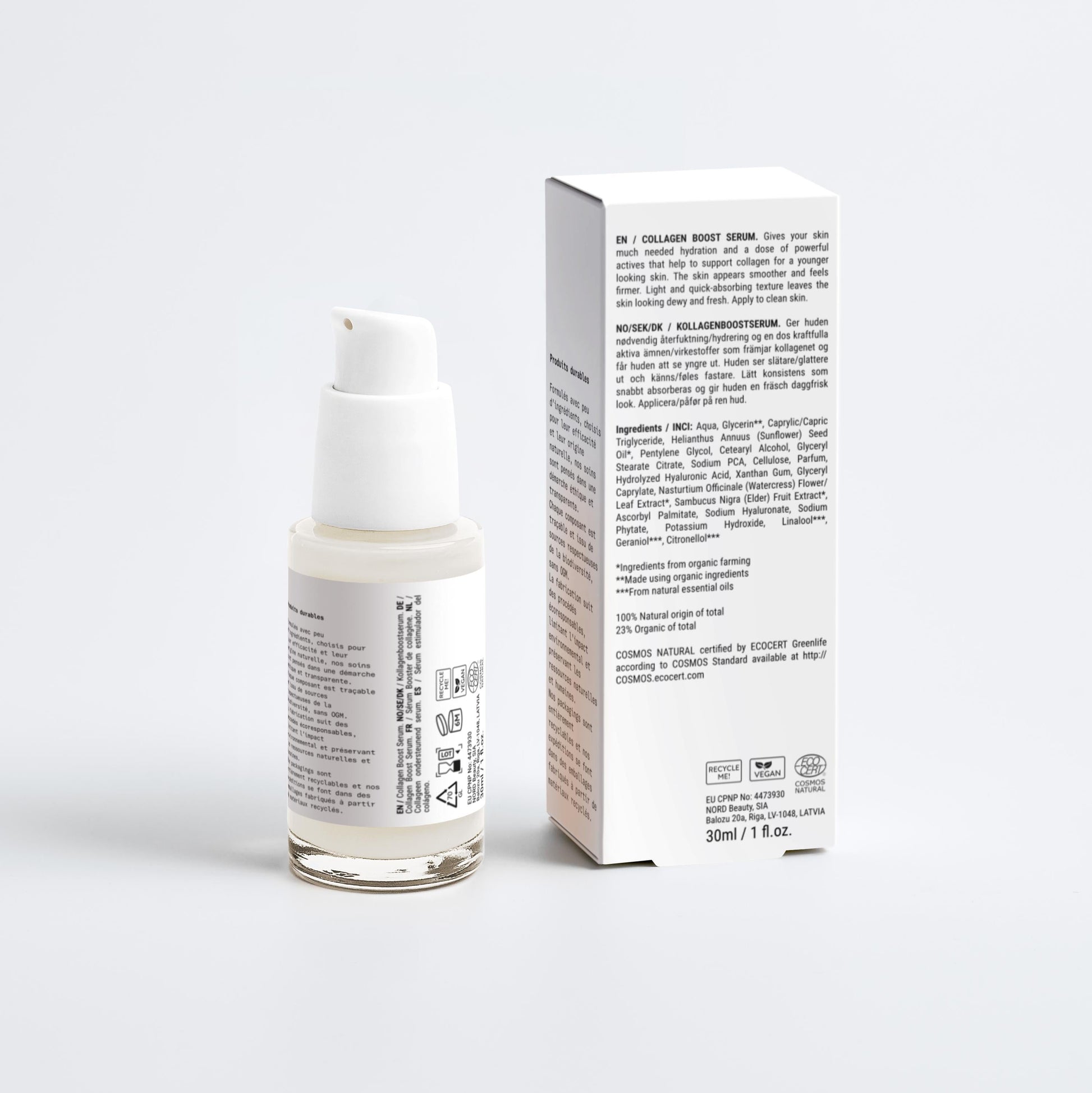 Nos soins sont formulés et fabriqués en Europe du Nord, dans le respect des standards cosmétiques les plus exigeants. Nous sommes certifiés ECOCERT, FDA, PLANT SAFETY.